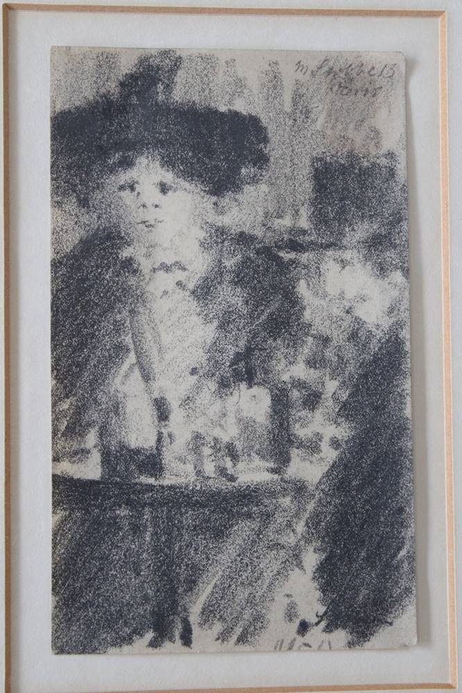 Max STOBBE (1883-1963) "Pariser Nachtleben-2 Frauen"(1913), Kohlezeichnung, ger/Glas, RG 46x46,5 cm [1]