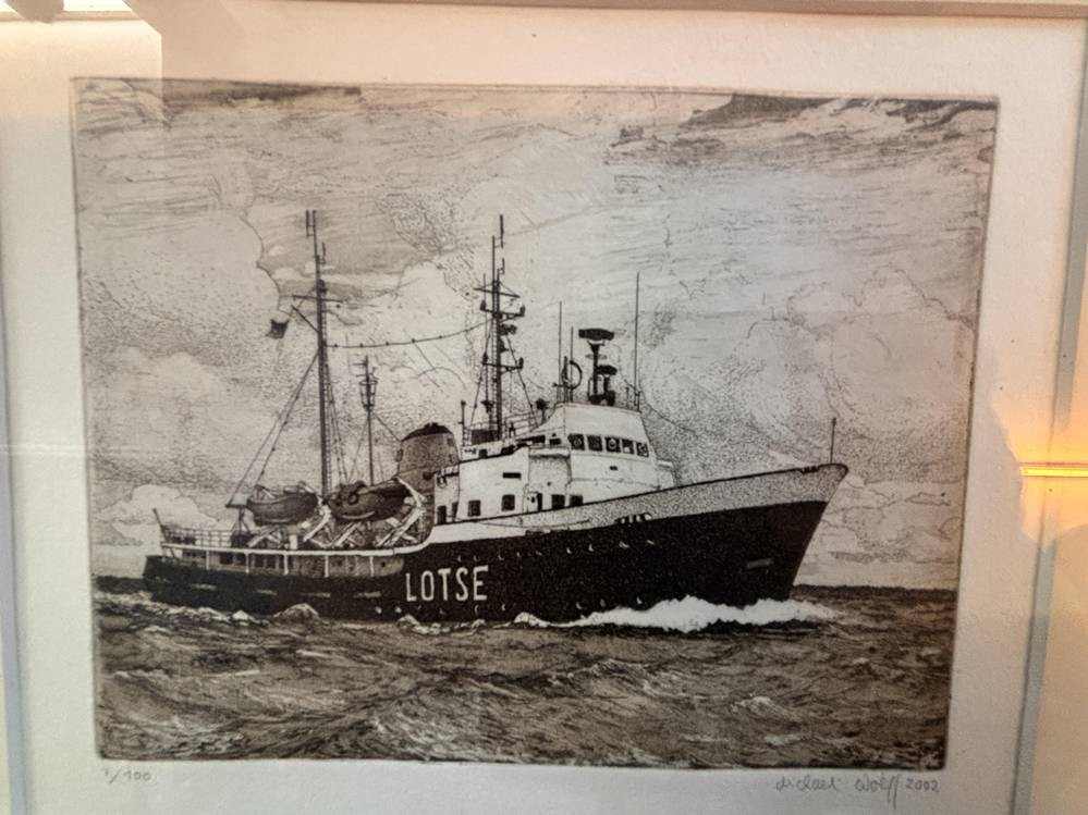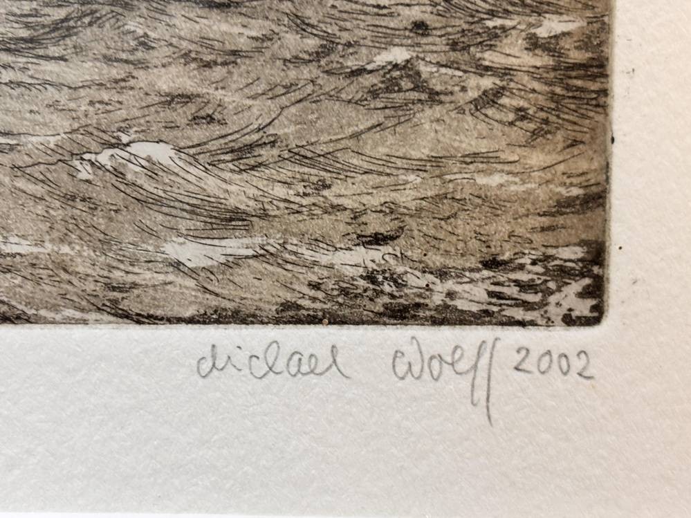 Michael Wollf, 2002 (1946) "Lotsenboot orig. Radierung, Nr. 1/100, ger/Glas, RG 30x36 cm