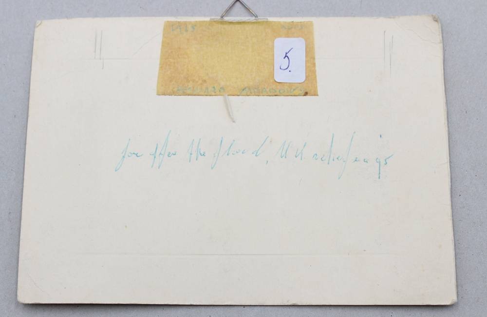 modernes kl. Kupferrelief, unleserl. signiert, verso schwer lesbar betitetl "after for the flood" o.ä., ungerahmt auf Pappe, ca. 11 x 16cm [1]