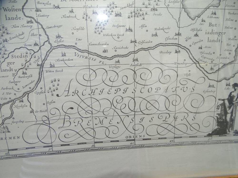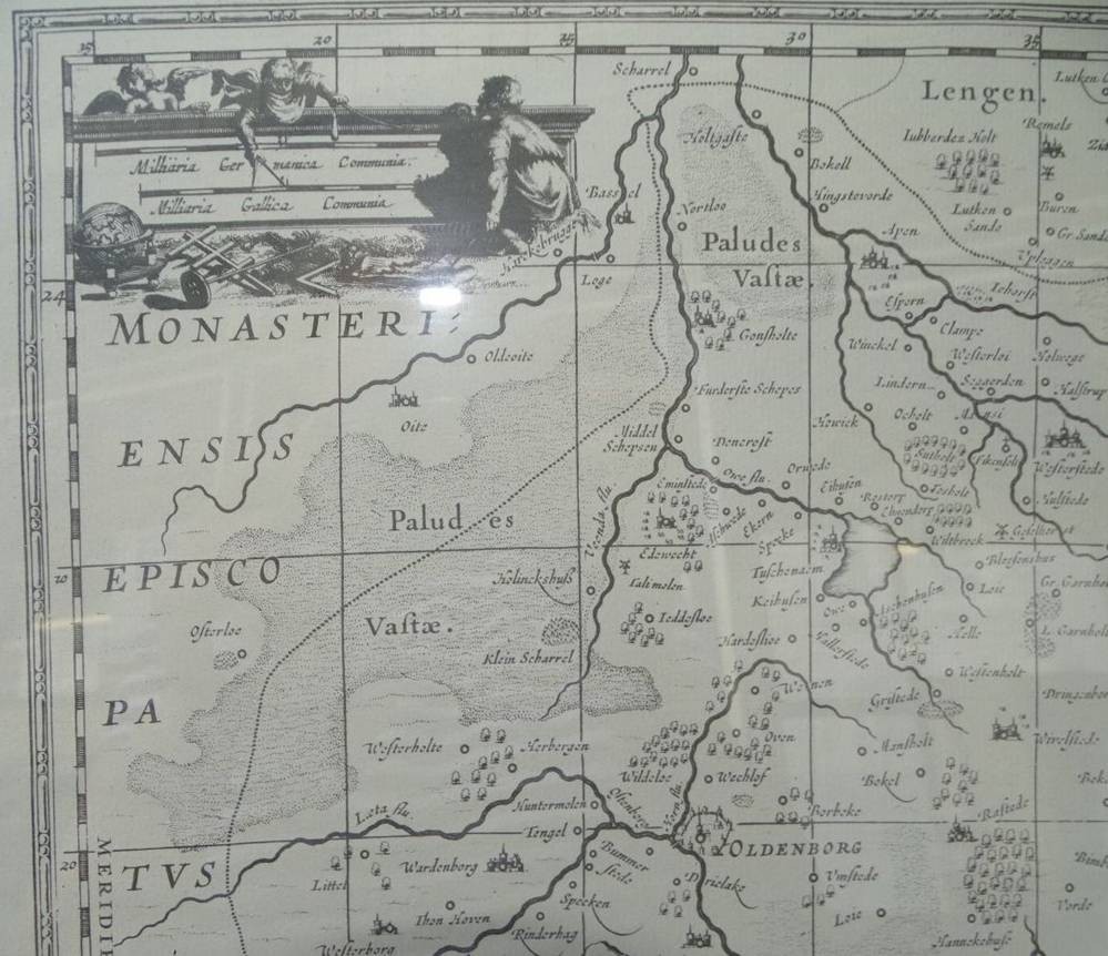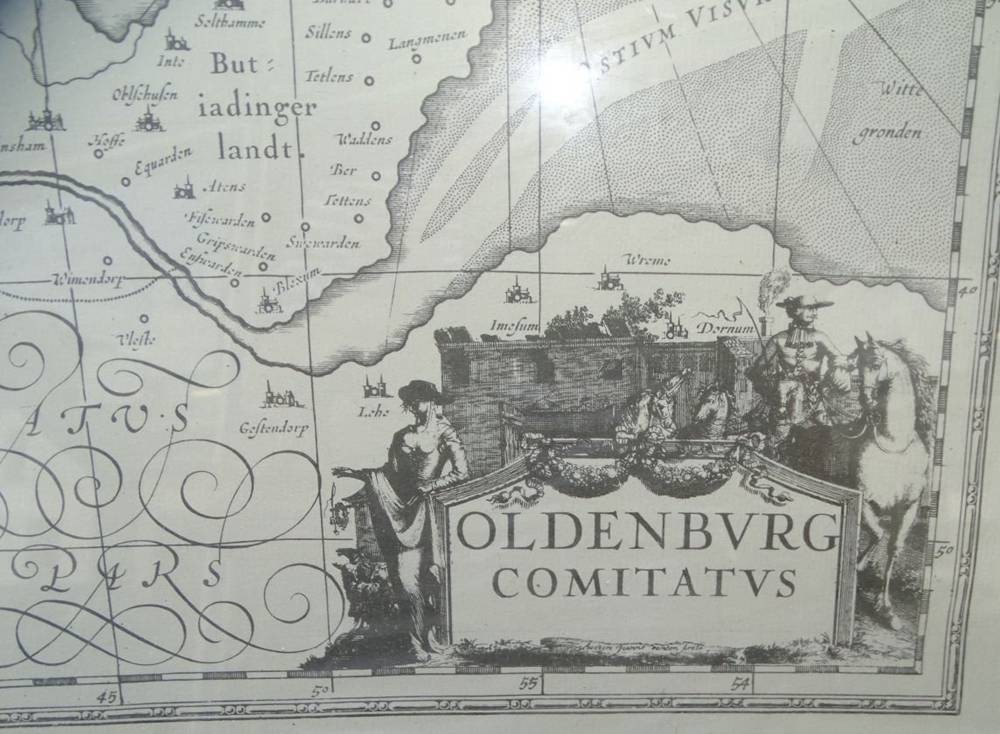 Oldenburg Comitatus-Landkarte-Nachdruck, ger/Glas, RG 49x63 cm