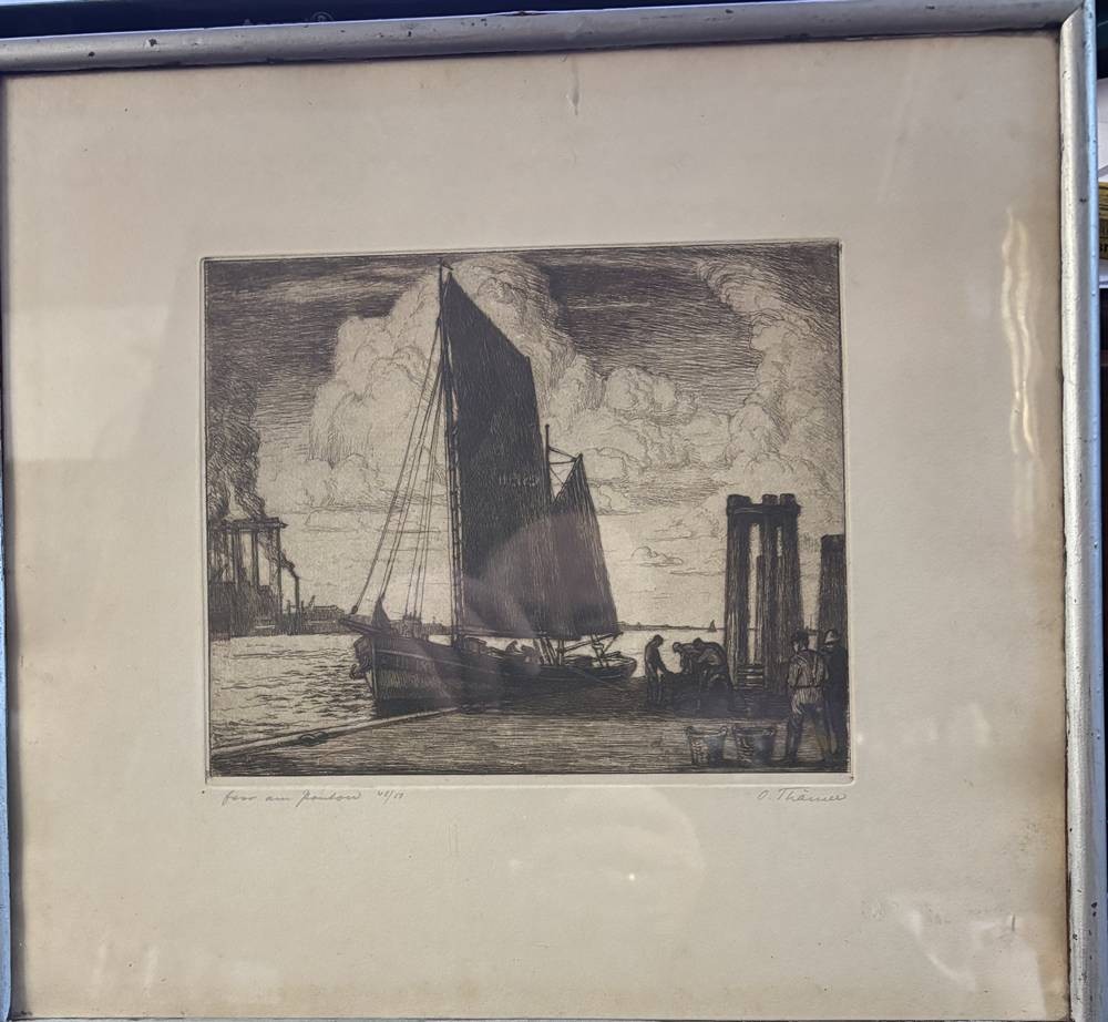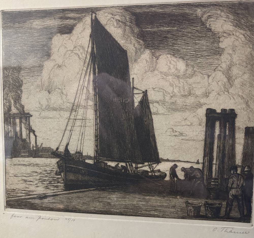 Otto THÄMER (1892-1975), betitelte grosse Radierung, Nr. 48/50, ger/Glas, RG 33x37 cm [1]
