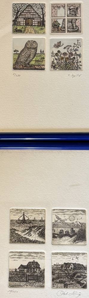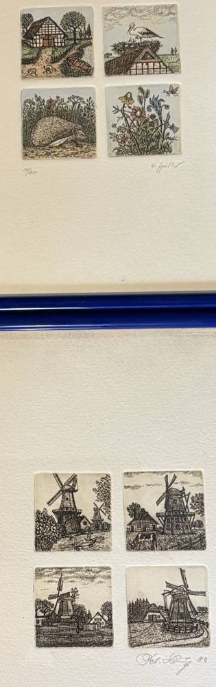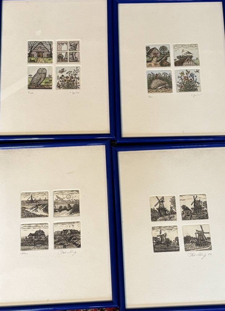 Peter Lenz (oder ähnlich) 4 Rahmen mit je 4 Farbradierungen, norddt. Motive in /150-er Auflage, RG je 25x19 cm [1]