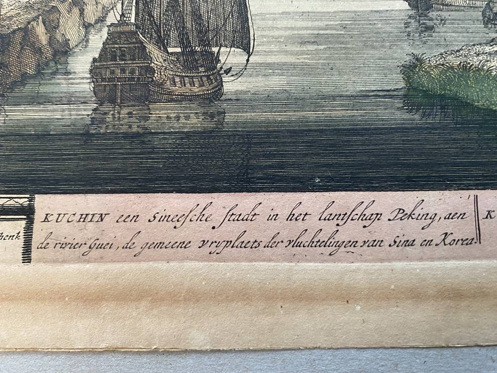 Pieter I SCHENK (1660-1718/19) "Kuchin een sineesche Stadt bei Peking", hancolorierter Stich um 1700, mit kl. Loch und Riss mittig, BG 25x30 cm [1]