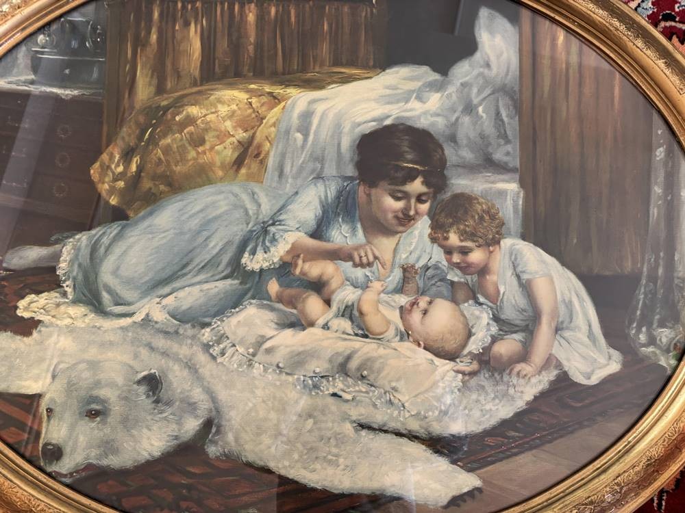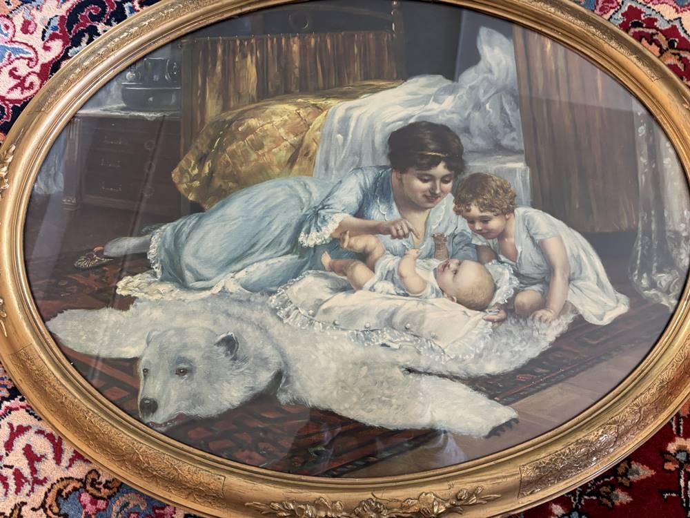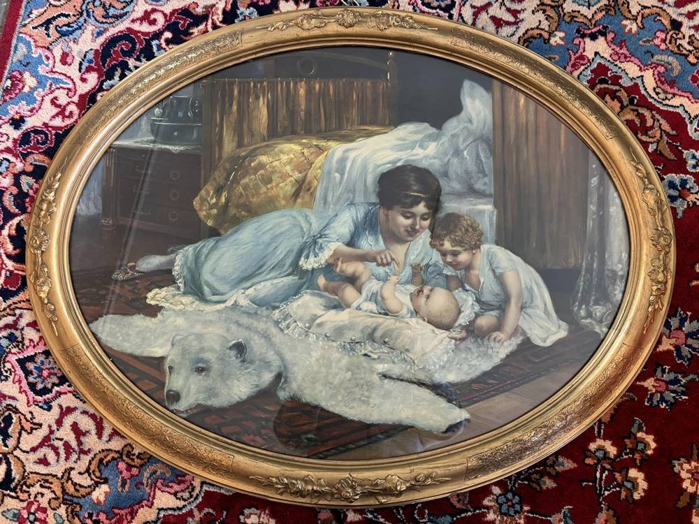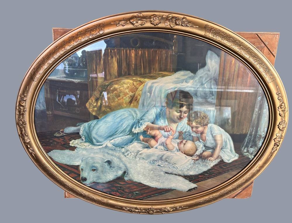 sogen. Kammerbild, Mutter mit Kindern, Chromlithografie, gut oval gerahmt/Glas, RG ca. 73x90 cm [1]