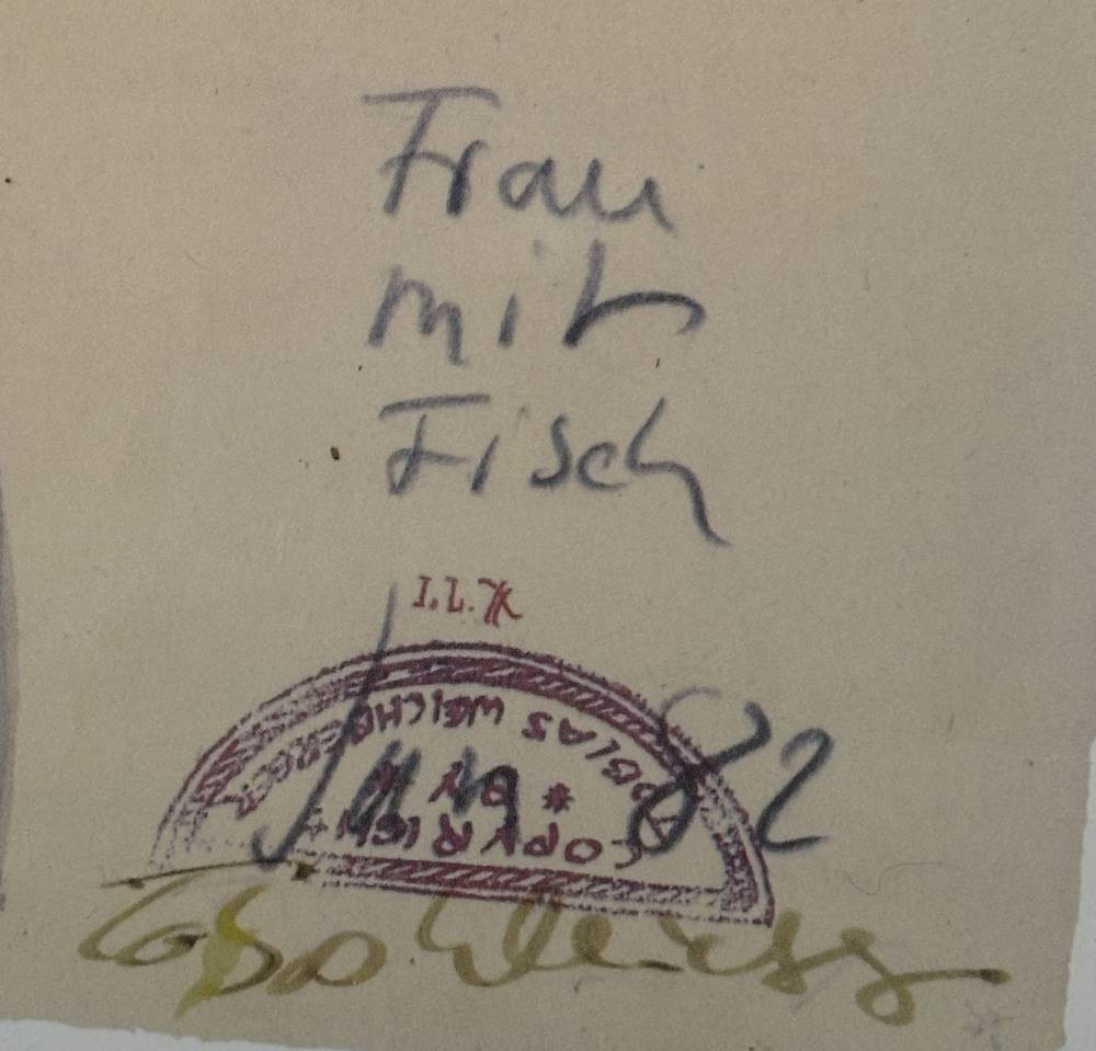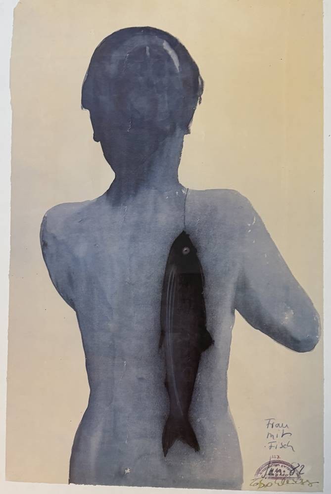 Tobias Weichberger (1951-1998) 1982 "Frau mit Fisch" Farboffset, gut gerahmt/Glas, RG 81x60 cm [1]