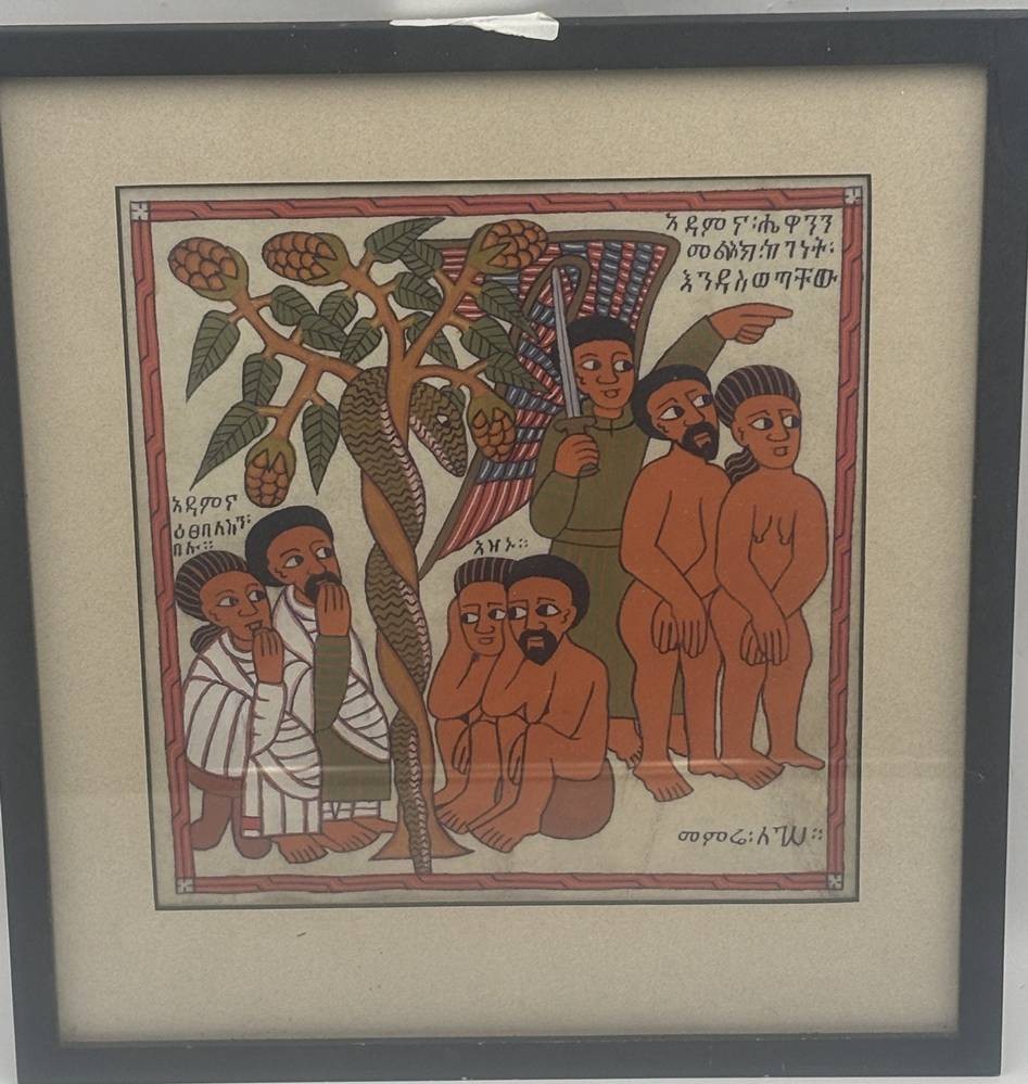 unleserl sign. Aquarell "Adam&Eva" Äthiopien, ger/Glas, RG 34x32 cm [1]