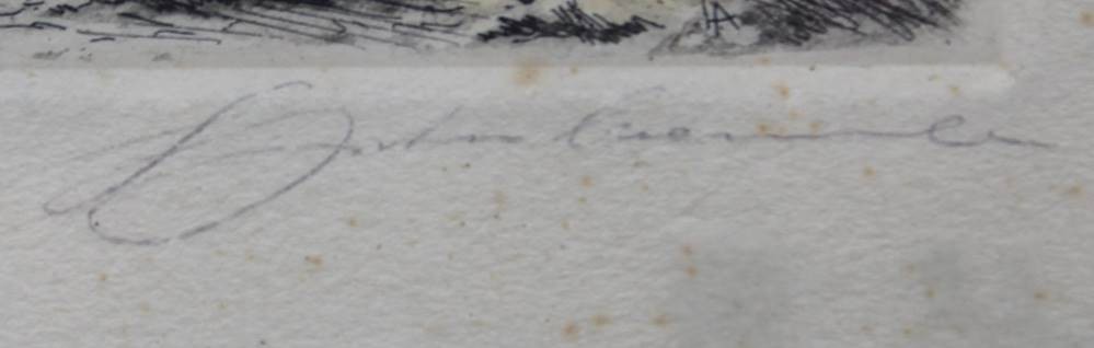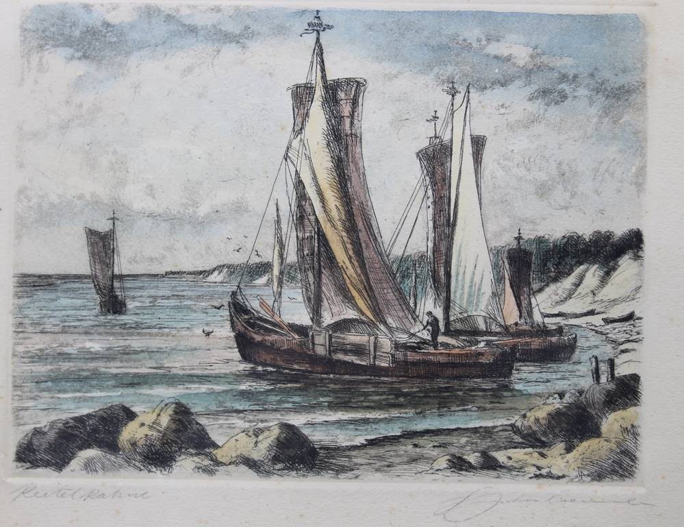 unleserl.signiert, Boote am Strand, Farbradierung, ger./Glas, RG 24 x 29cm. [1]