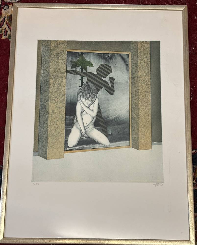 unleserl. signiert (wie vorher) Radierung?, Nr. 1/45, ger/Glas, RG 67x49 cm [1]