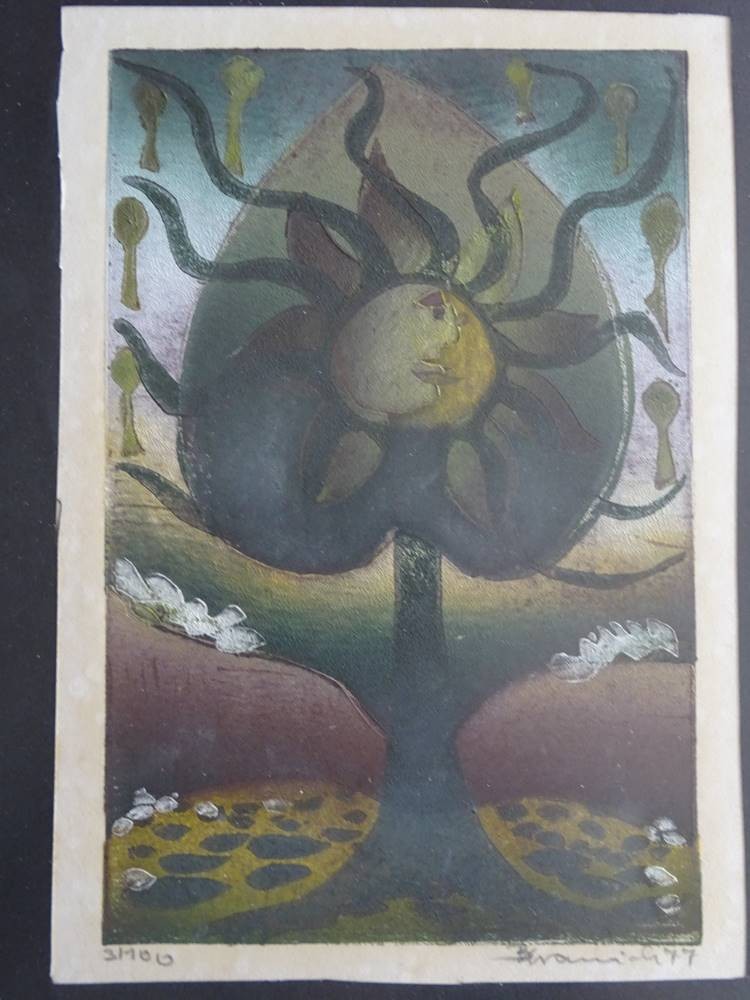 unleserl signierte 2 Farblithografien, 1977, Ed. 100, ger/Glas, RG 29x23 cm [1]
