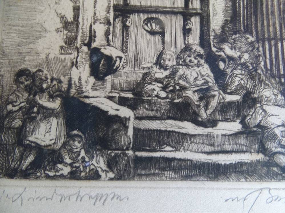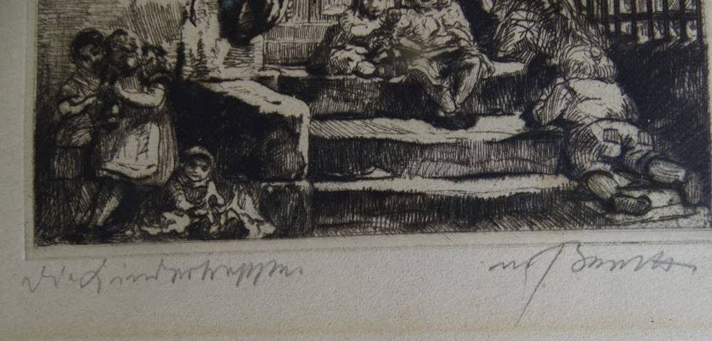 unleserl. signierte, betitelte Radierung, ger/Glas, RG  39x31 cm