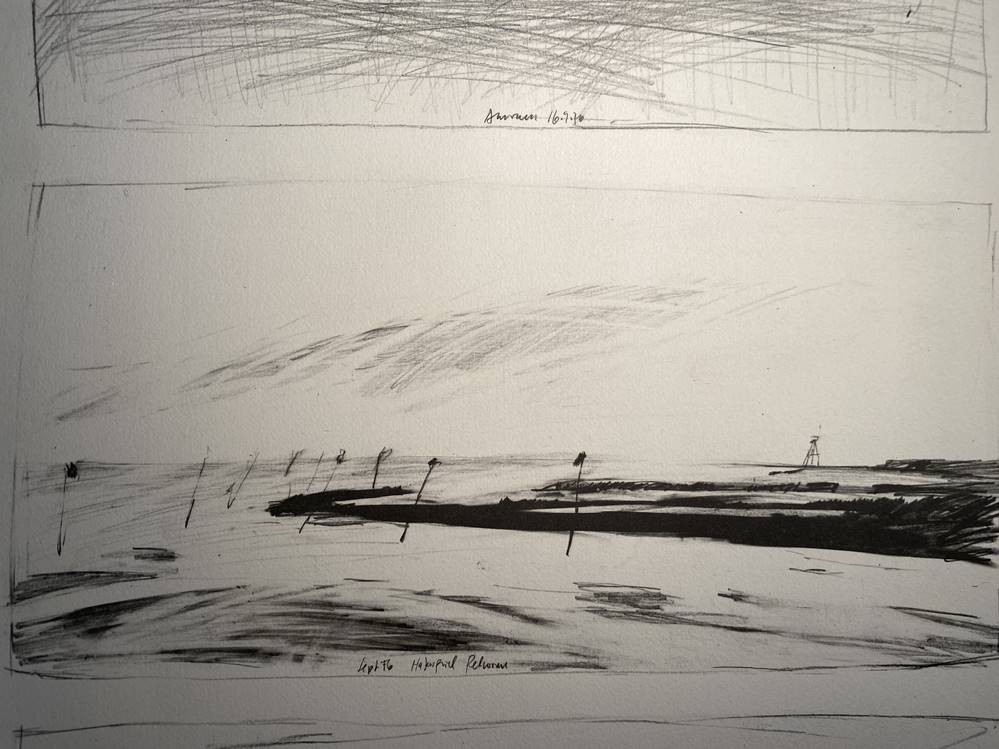 unleserl. signierte grosse Von Pellworrn nach Amrum" betitelt, 1976, 3 Motive, alle in Spiegelschrift betitelt, E.A., Blatt mit Läsuren an den R#ndern, BG 71x52 cm (1x Foto gespiegelt) [1]