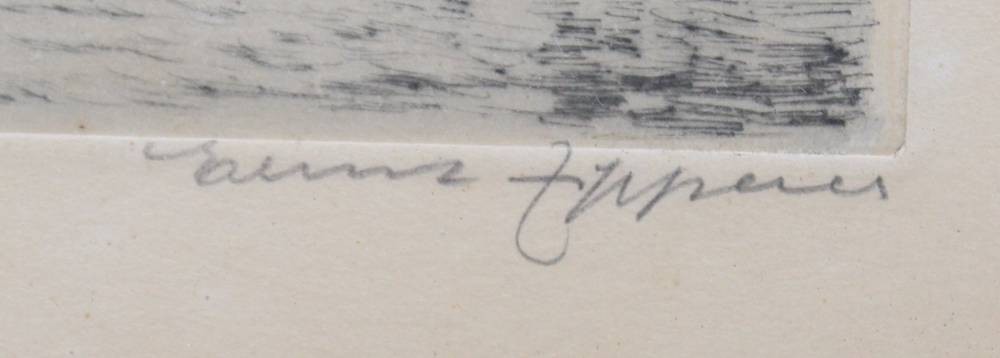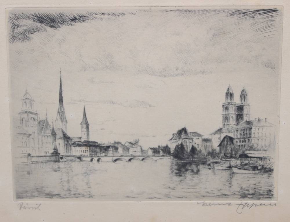 unleserl.signierte Radierung, Ansicht Zürich, ger./Glas, RG 22,5 x 28cm [1]