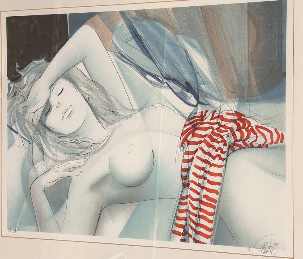 unleserl. signierter Akt, Lithografie, Nr, 71 von 125, ger/Glas, RG 90x73 cm, (Sperrgut)