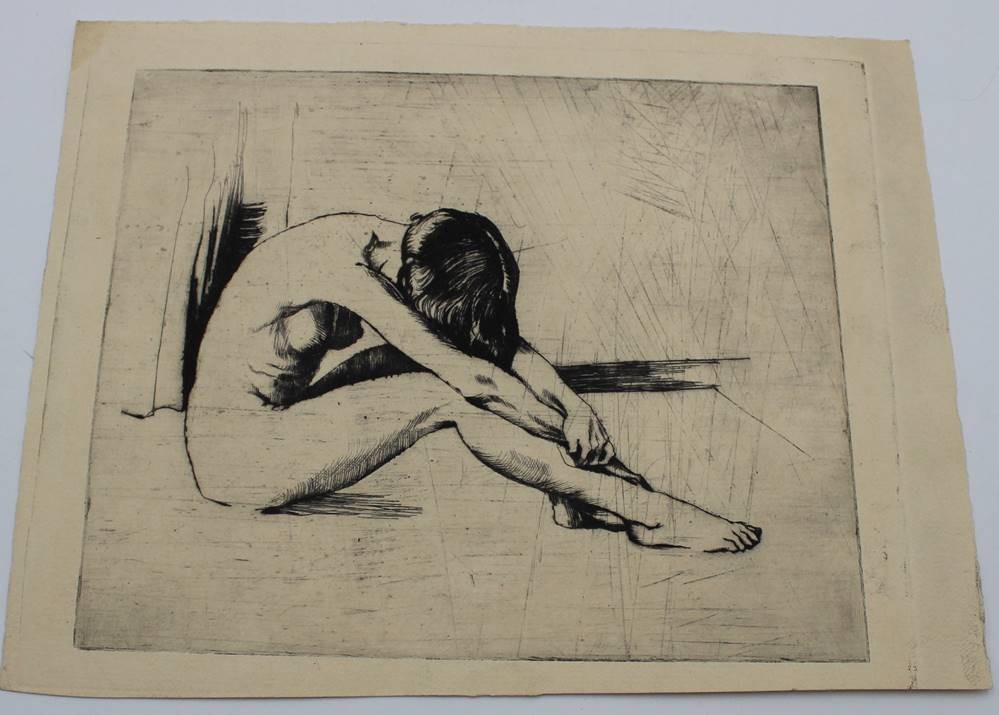 unsignierte Radierung, weibl. Akt, Ernst Fuchs ?, ungerahmt, BG 20 x 26cm. [1]