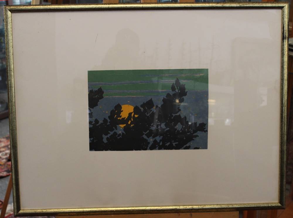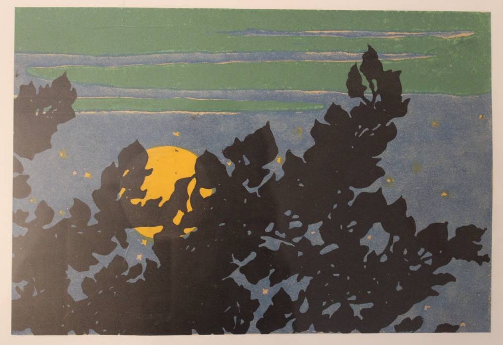 unsignierte wohl Mischtechnik od. Lineolschnitt?, Nacht, gerahmt/Glas, RG 63,5 x 83cm MG 24,5 x 35,5cm [1]