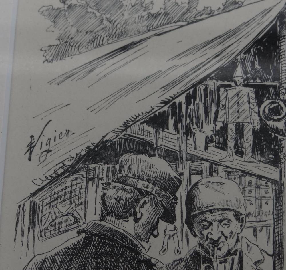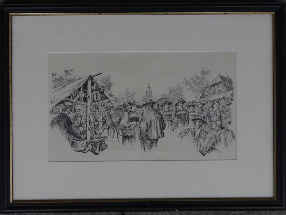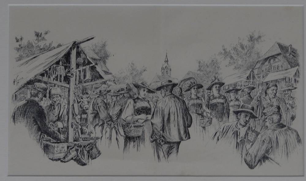 Walther VON VIGIER (1851-1910) "Der Dorfmarkt in Langnau" Federzeichnung, ger/Glas, RG 34x47 cm, [1]