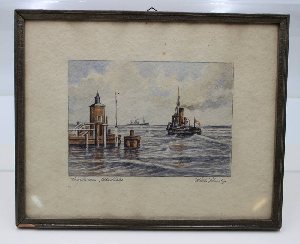 Wilhelm Schulz, Cuxhaven Alte Liebe, Aquarellierte Zeichnung, ger./Glas, RG 25 x 31cm [1]