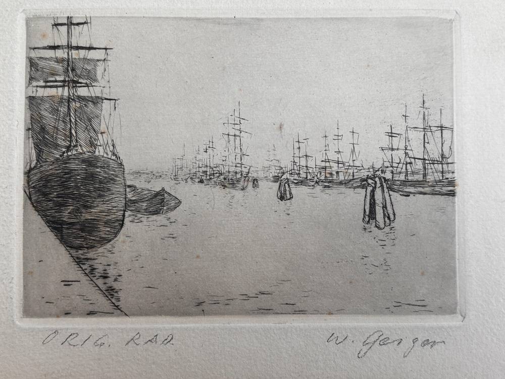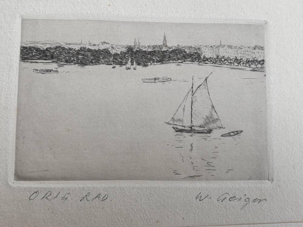 Willi GEIGER (1878-1971) 4x kl. Radierungen, Hamburg-Motive, wohl von fremder Hand bezeichnet. BG ca. 12x23 cm bis 16x24 cm [1]