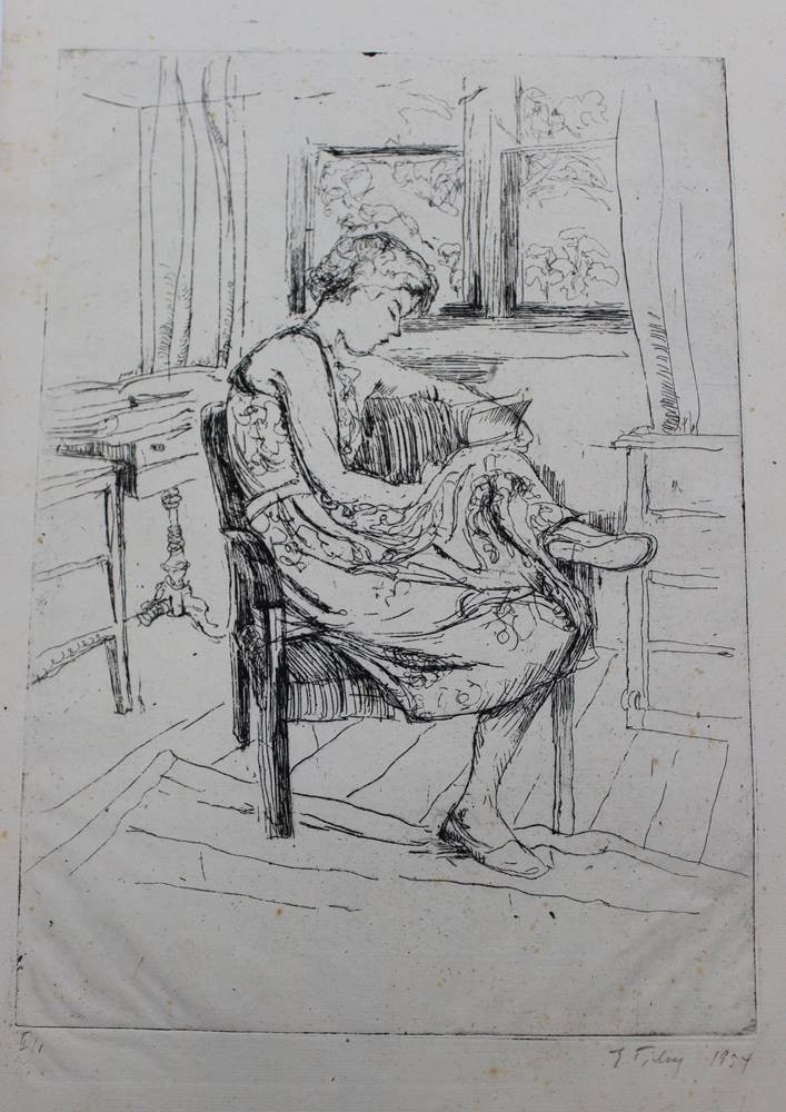 wohl Josef TICHY (1922-2001), lesende Frau, Radierung, Blatt mit Läsuren, ungerahmt, BG 38 x 25cm. [1]