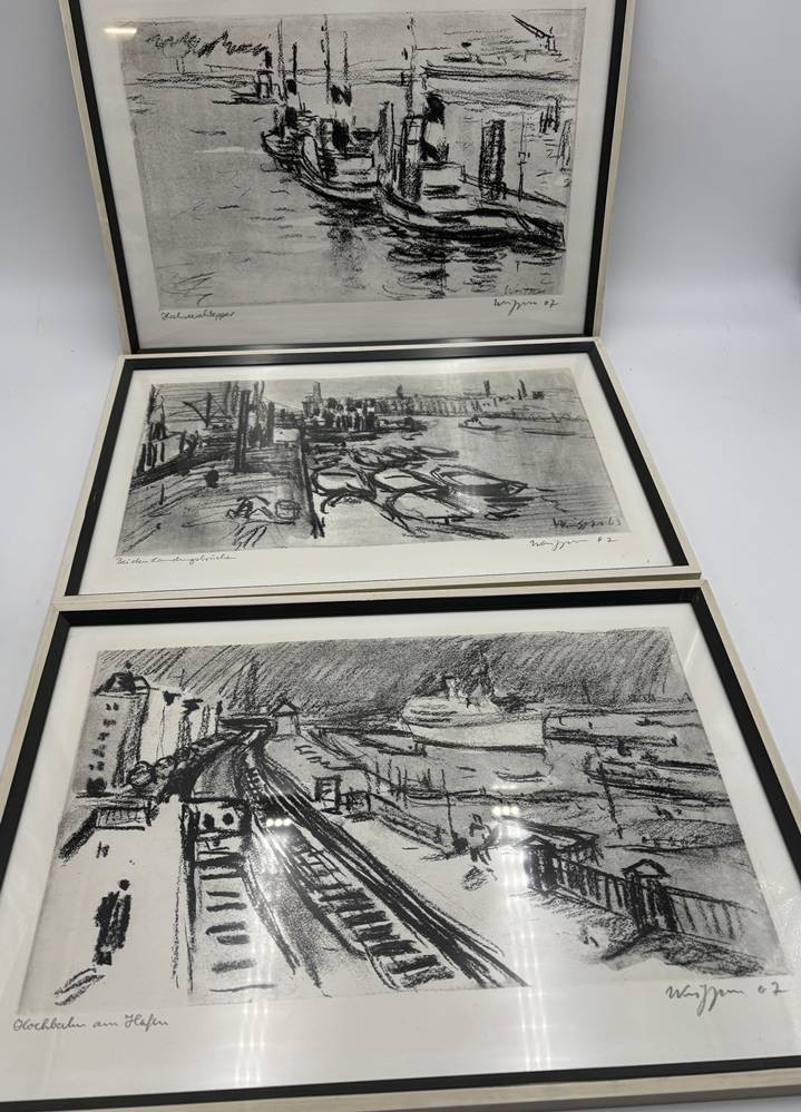 Wriggers, Adolf Heinrich (1896-1984) 3x Hamburg-Grafiken, signiert, datiert, betitelt, gut gerahmt/Glas, RG 28x40 cm [1]