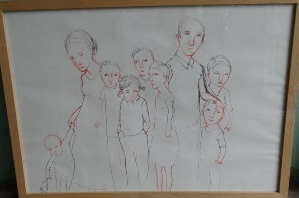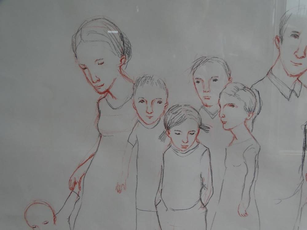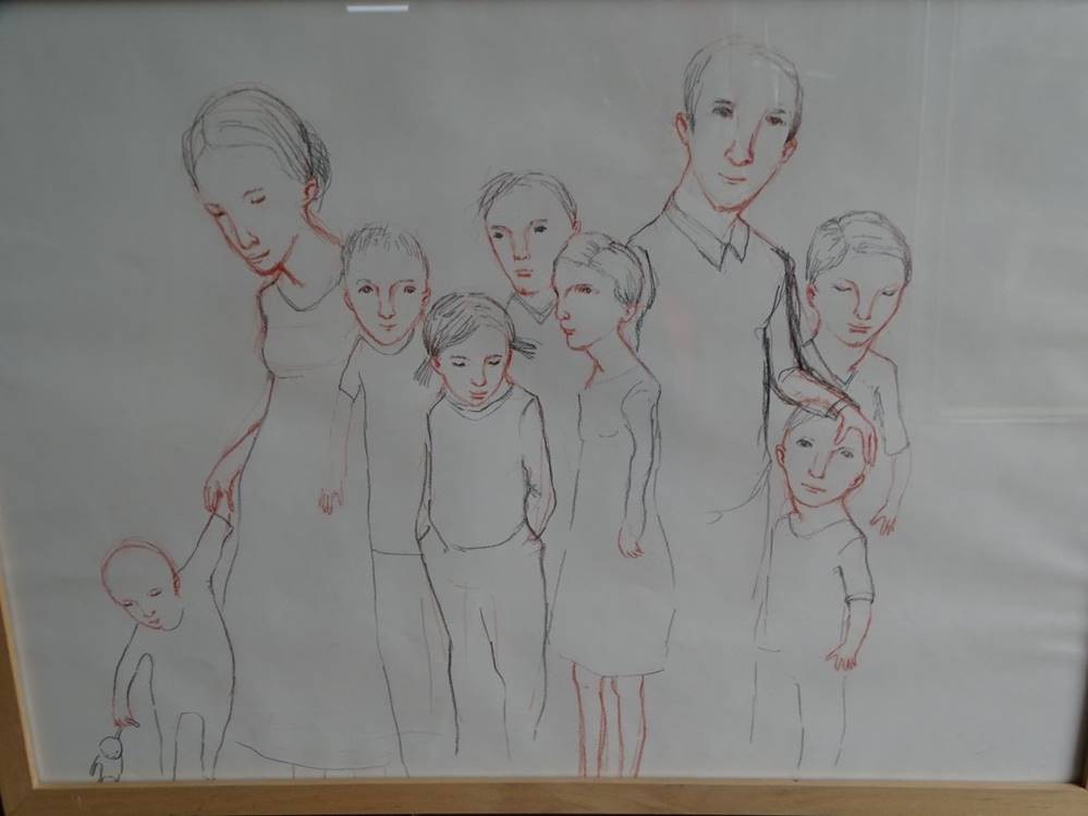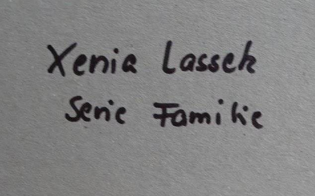 Xenia Lassek 3x "Familie", Lithografien, ger/Glas, RG 45x64 cm, 2x 47x33 cm [1]