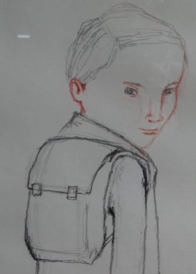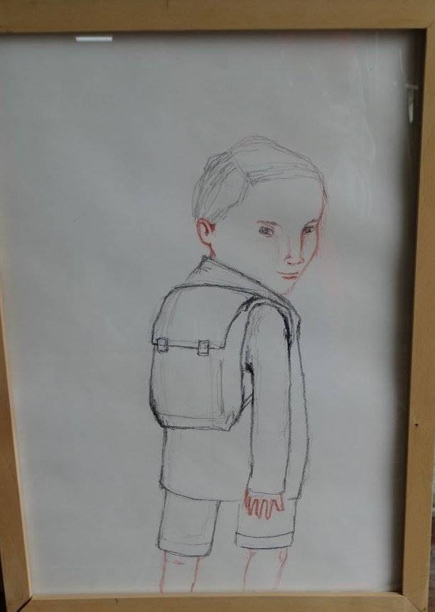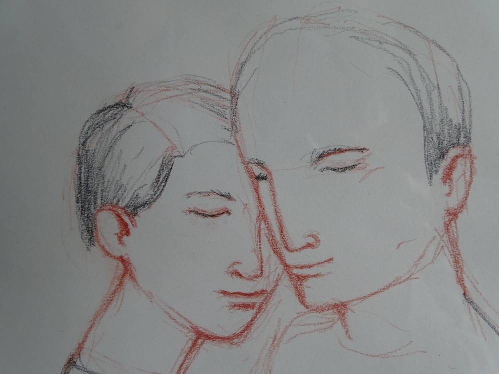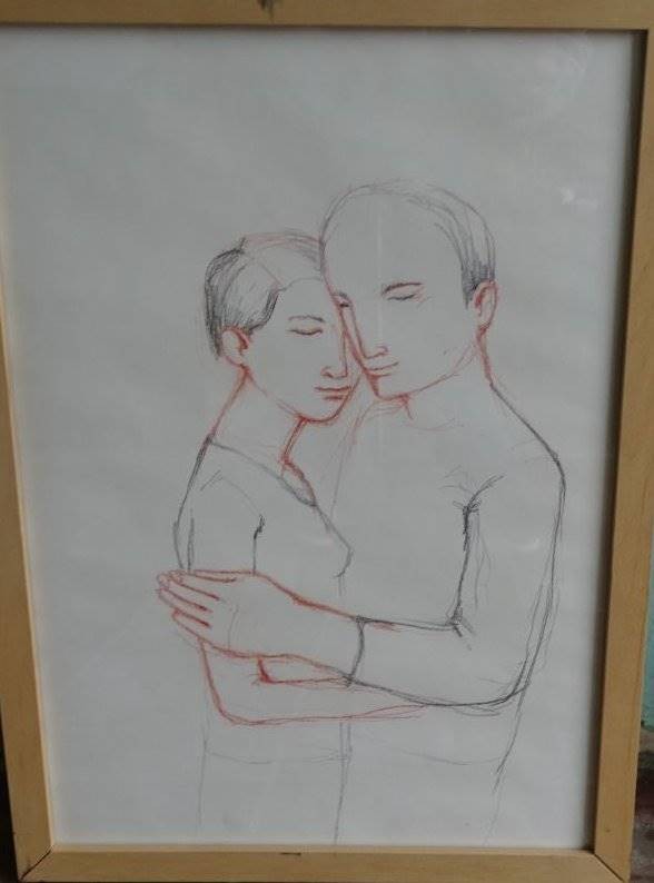 Xenia Lassek 3x "Familie", Lithografien, ger/Glas, RG 45x64 cm, 2x 47x33 cm