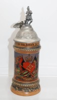 alter Feuerwehr-Krug mit gravierten Zinndeckel, in Boden Lithophanie, gut erhalten, wohl um 1920, H-27 cm