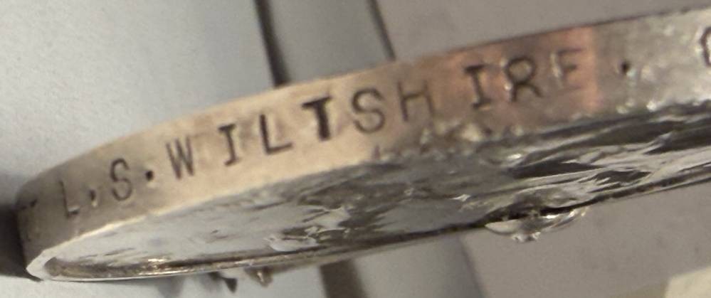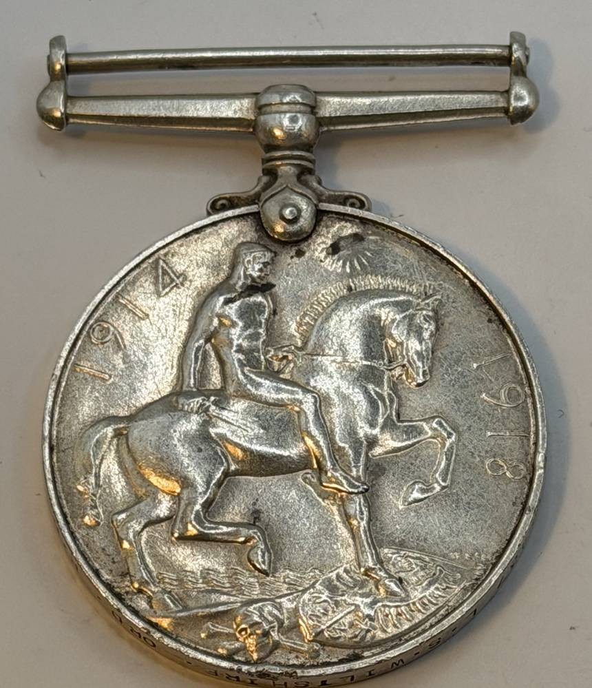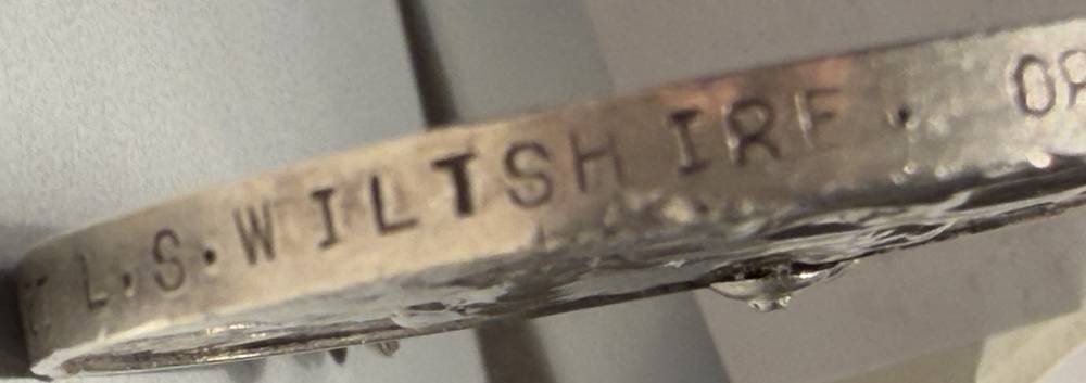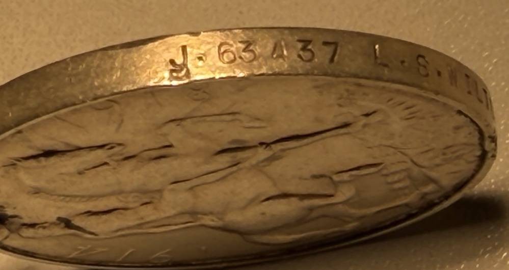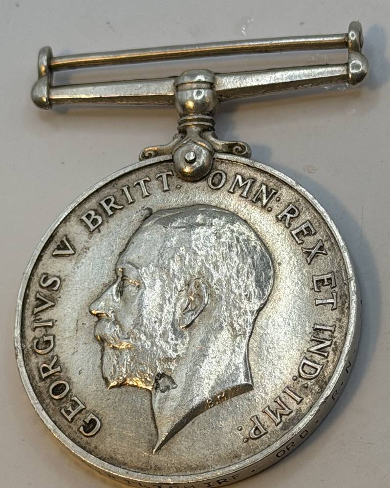 1918 Großbritannien König GEORGE V KRIEGSMEDAILLE Silber, 32,9 gr., Rand umlaufend nummeriert und beschriftet [1]