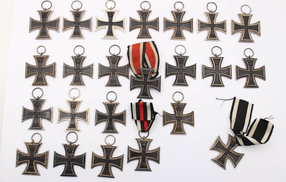 23x Eiserne Kreuze, 2. Klasse, 1. WK, teilw. mit Hersteller [1]