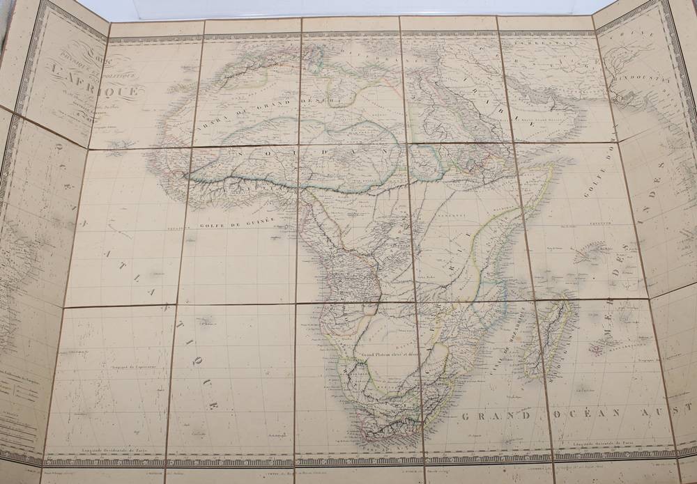 2x alte Faltkarten, Manöver-Plan der königl. sächs. Truppen ziwchen Löbau u. Zittau 1861 sowie Karte von Afrika