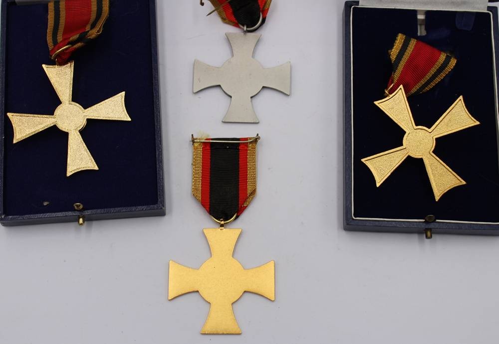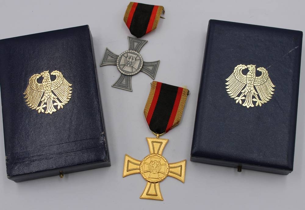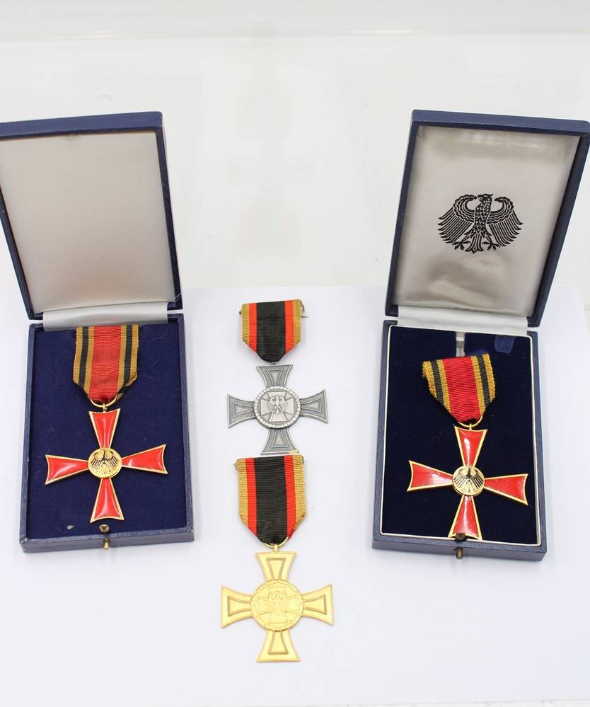 2x Bundes-Verdienstorden in orig. Etui und 2 x Ehrenkreuz der Bundeswehr, 1x davon in Gold