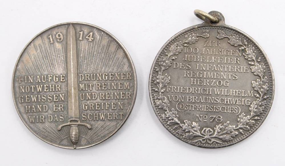 2x Silber-Medaillen, Kaiser Wilhelm II, 1x -990-, militärisch
