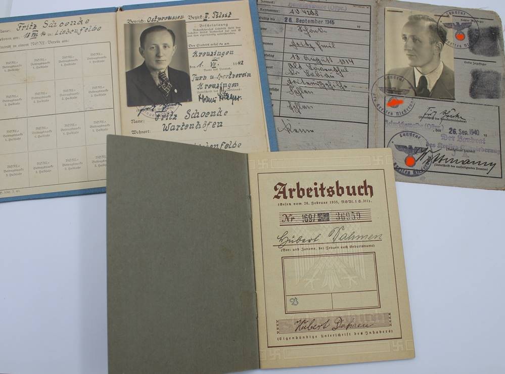 3x Dokumente, 3. Reich, Kennkarte, Arbeitsbuch, NS-Reichsbund für Leibesübungen