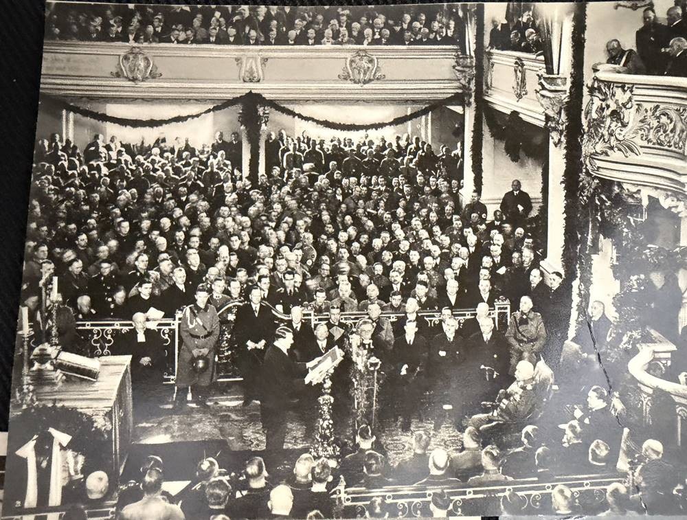 3x seltene Postkarten mit dem Führer A. Hitler, 1x Stapellauf, 1x Rede in Staatsoper, 1xStaatsakt in Potsdam