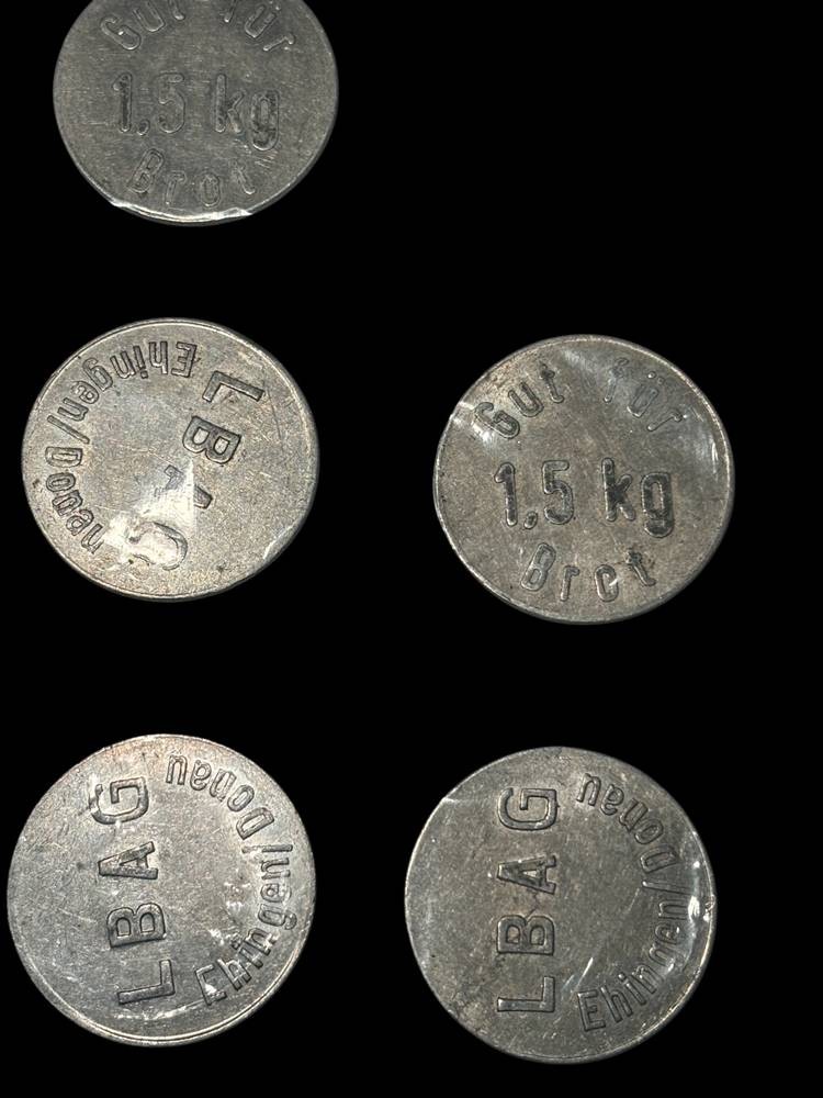 5x Lebensmittel-Marken "Ehingen/Donau" gut für 1,5 kg Brot, orig. eingeschweisst