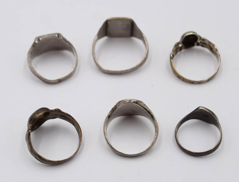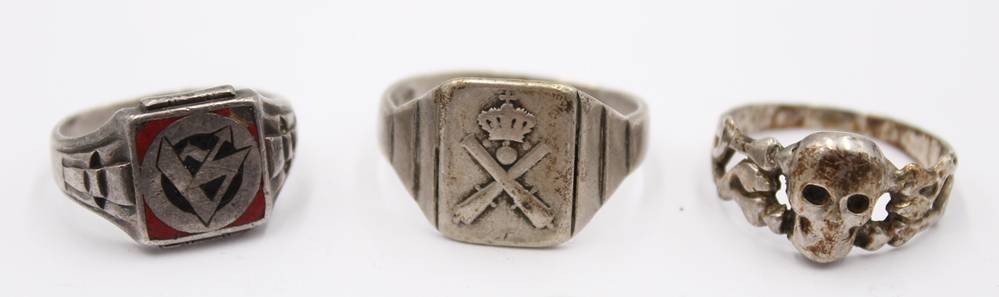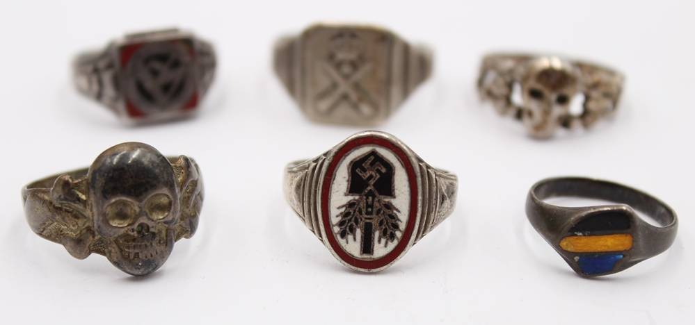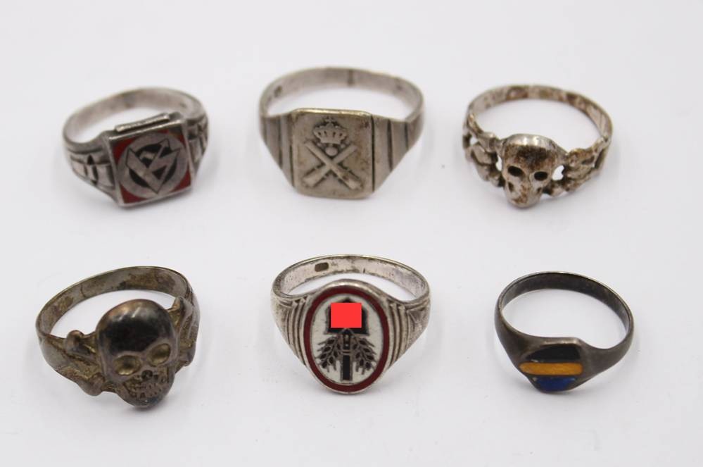 6x div. Ringe, u.a. 2x Totenkopfringe, SA-Ring, RAD-Ring