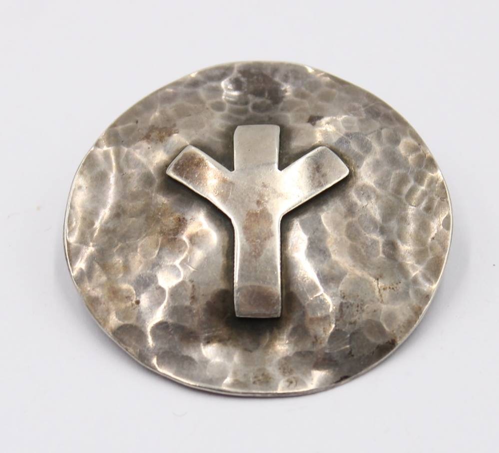 800er Silberbrosche mit Algiz-Rune, wohl Sonderanfertigung aus der Zeit des 3. Reiches, 12,7gr., D-4,5cm [1]