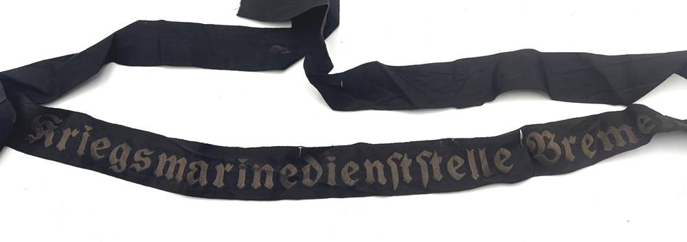 altes Mützenband "Kriegsmarine-Dienststelle Bremen", Altersspuren [1]