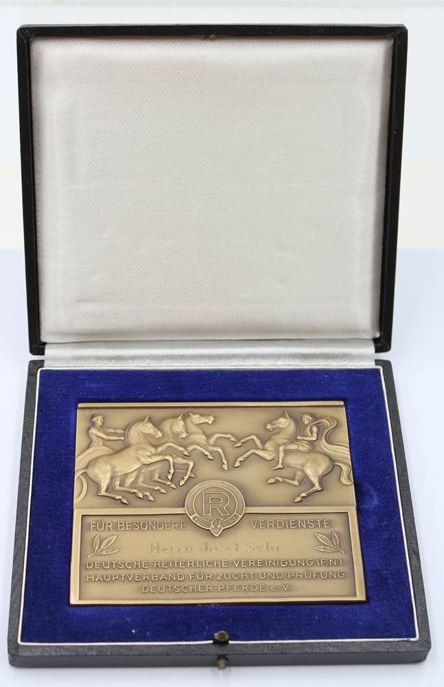 Ehrenplakette der Deutschen Reiterlichen Vereinigung in Etui, Bronze, 9 x 10,5cm [1]