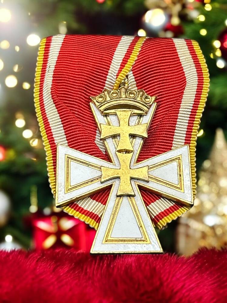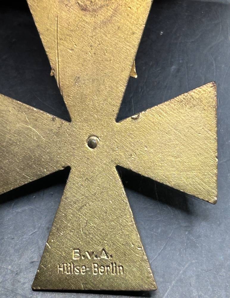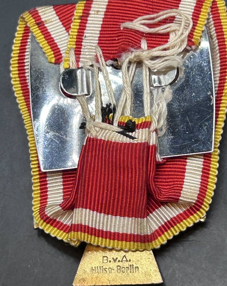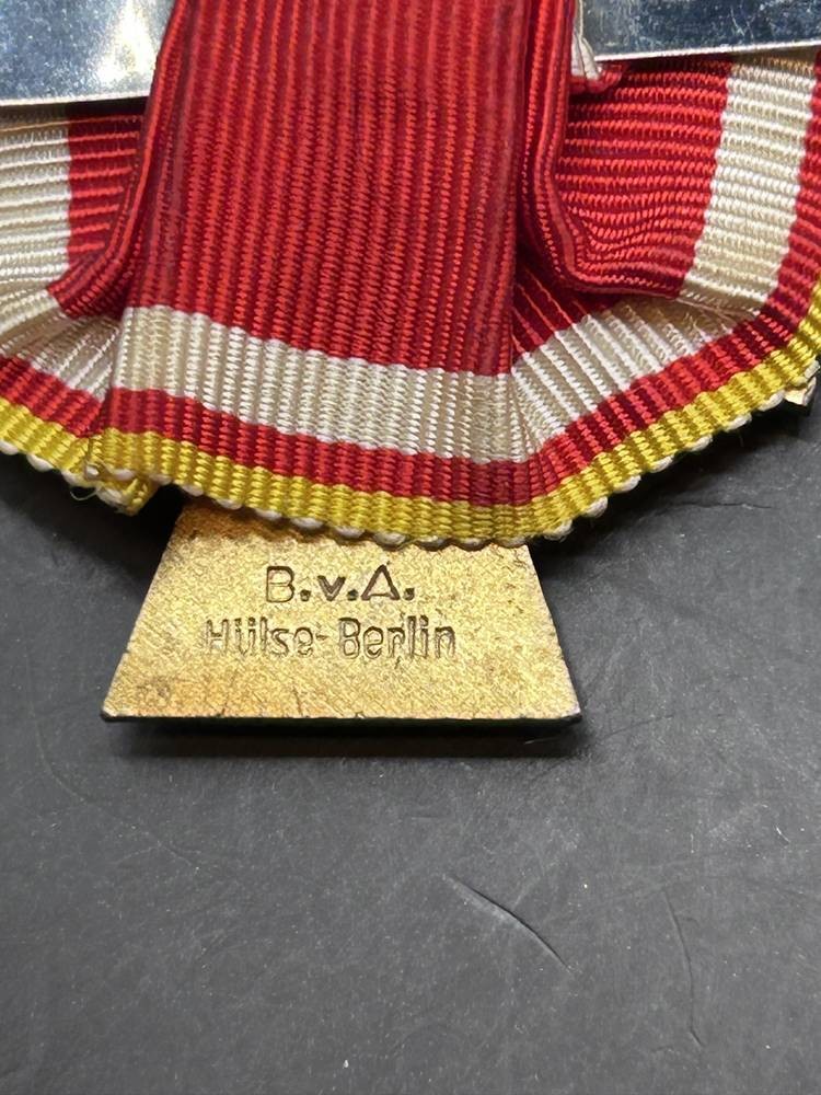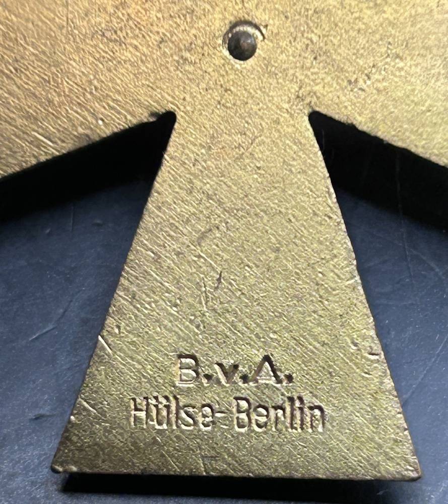 Freie Stadt Danzig : Danzig Kreuz, 2. Klasse. Buntmetall vergoldet, teilweise emailliert , die Auflage zweifach verschraubt, rückseitig vertieft die Herstellermarkierung "B.v.A. Hülse-Berlin", am Bande. Insgesamt wurden nur 272 Exemplare der 2. Klasse verliehen in 1939 bis zum 11 Dezember, 47,5 mm × 35 mm und war im gesamten Reich als staatliche Auszeichnung anerkannt [1]