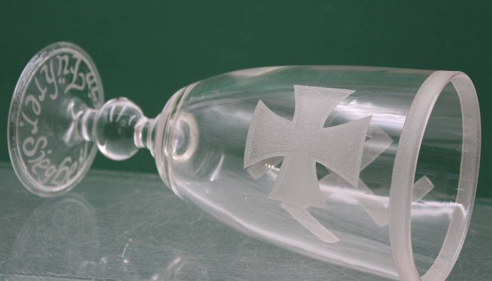 gr. Glaspokal, beschliffen, wohl frühe Sammleranfertigung!, ca. H-23,5cm [1]