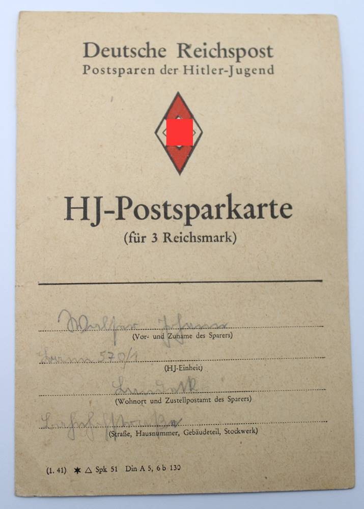 HJ-Postsparkarte, 3. Reich [1]