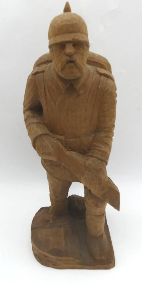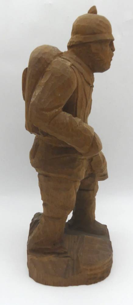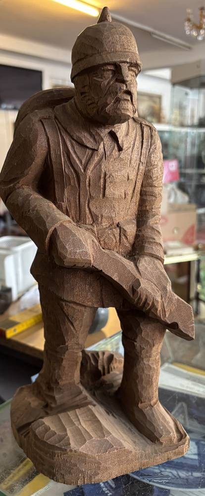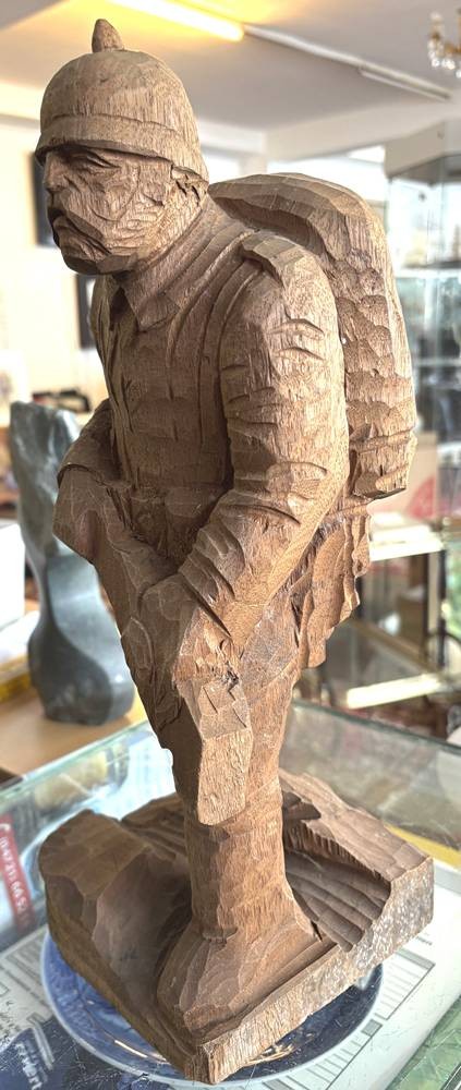 Holzschnitzerei, 1.WK Soldat mit Tornister, Gewehr beschädigt, H-37 cm [1]