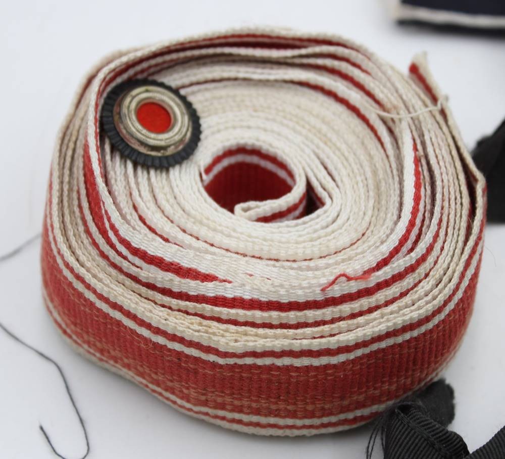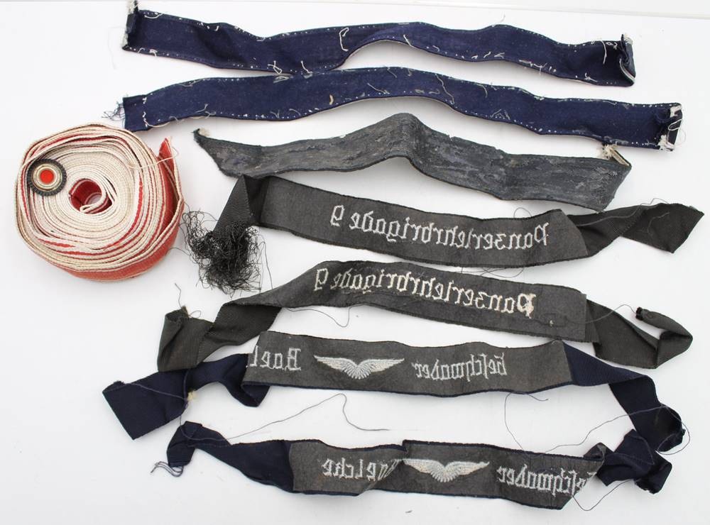 Konvolut div. Mützenbändern und rotes Ordensband, Alter ? [1]