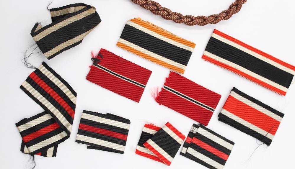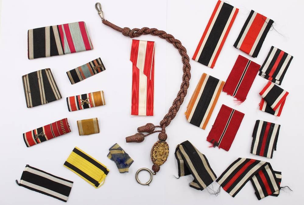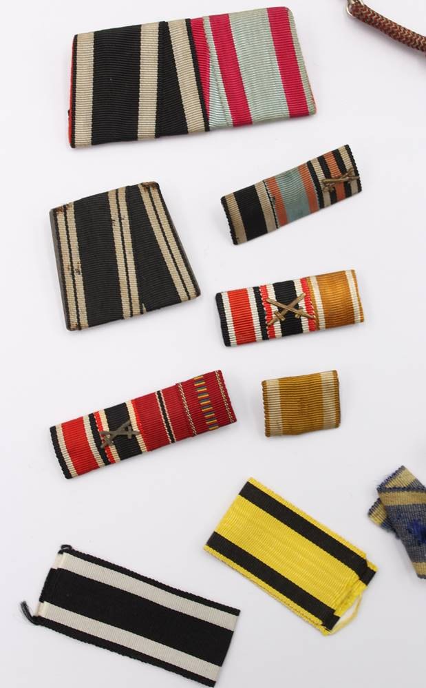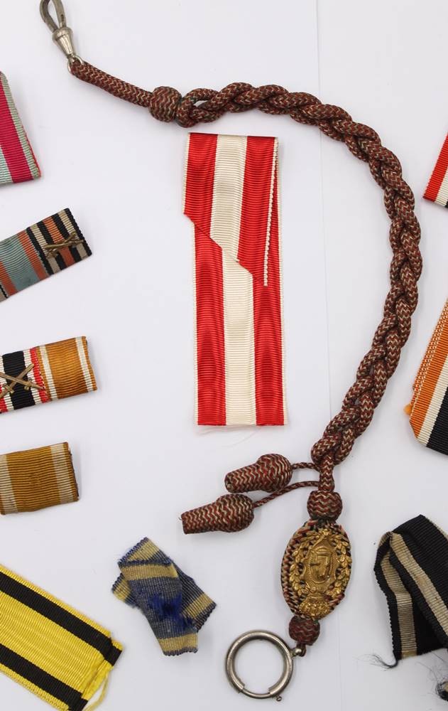 Konvolut div. Ordensbänder, Spangen und eine Schützenschnurr
