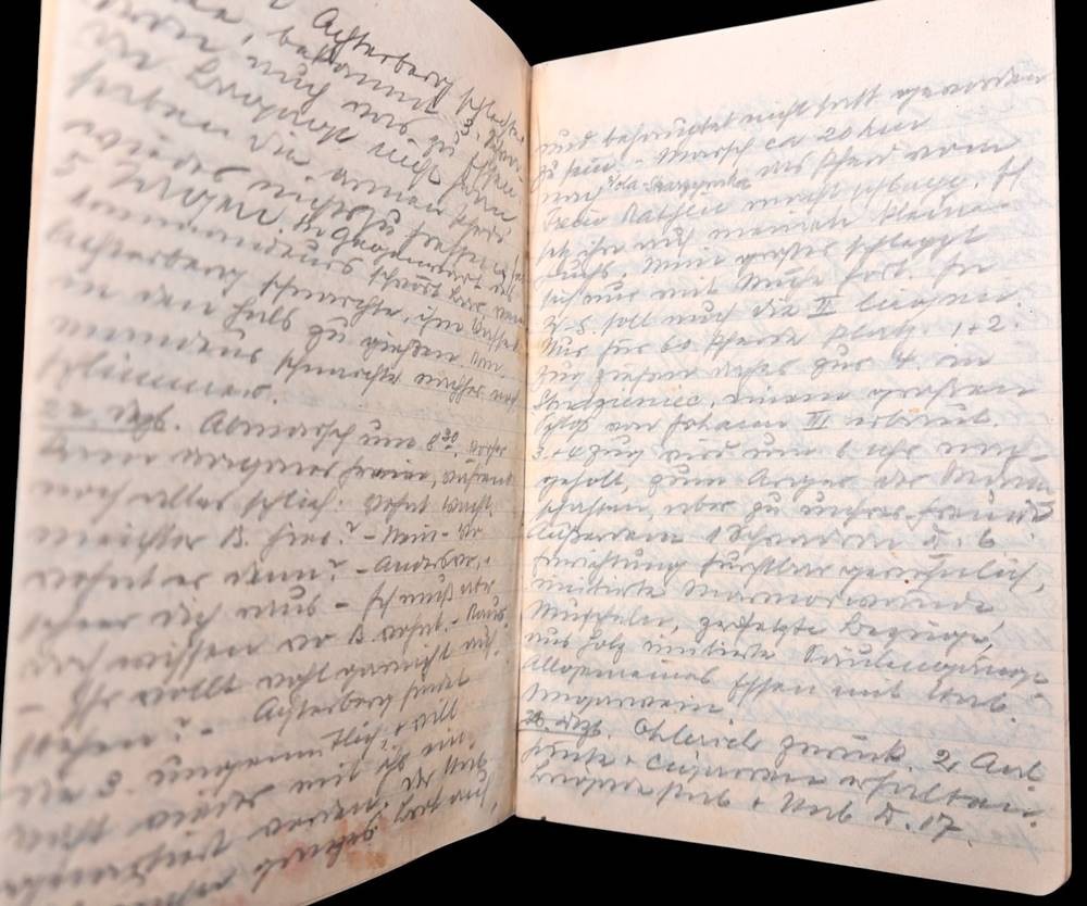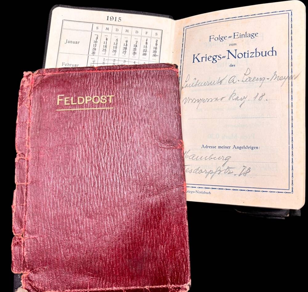 Kriegs-Notizbuch Folge Einlage 1915, tw. eng beschrieben, und Hülle für Feldpost, auch hier einige Seiten beschriftet