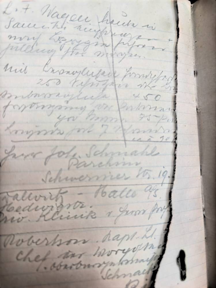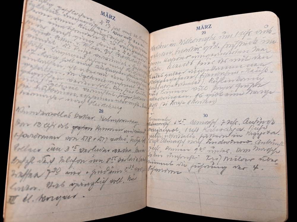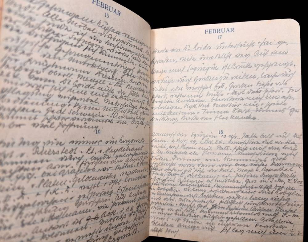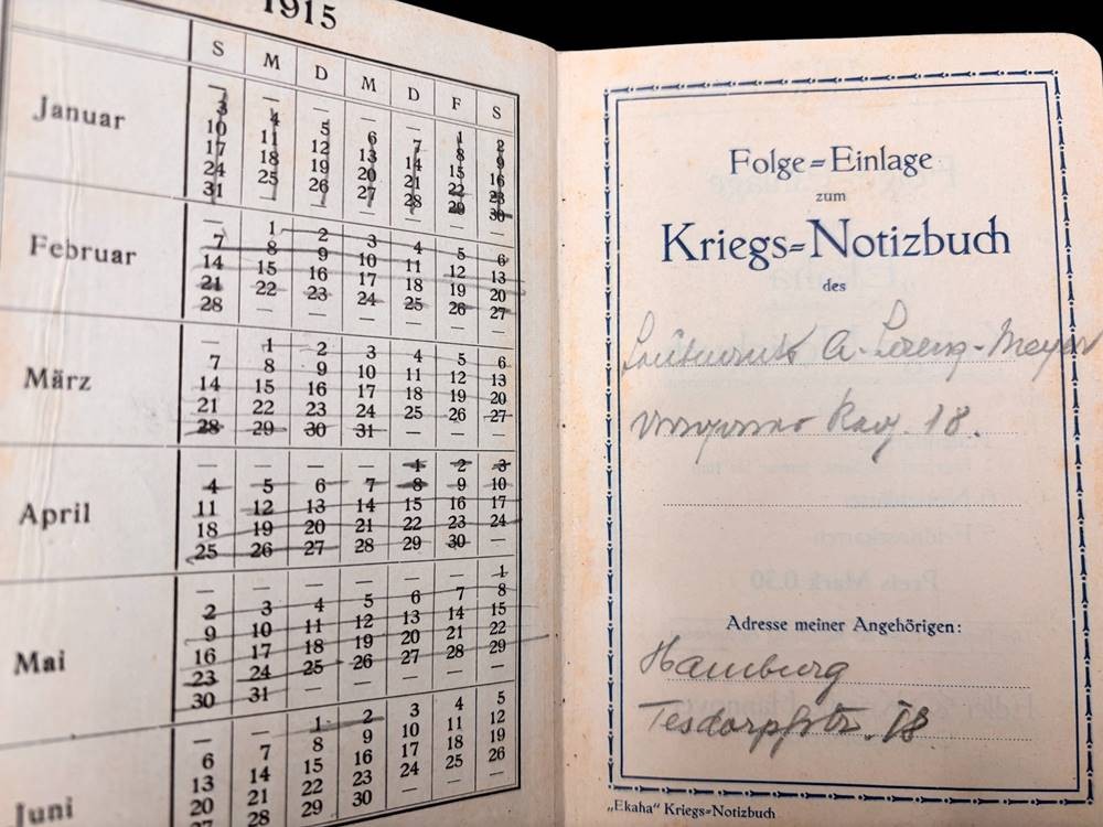 Kriegs-Notizbuch Folge Einlage 1915, tw. eng beschrieben, und Hülle für Feldpost, auch hier einige Seiten beschriftet [1]
