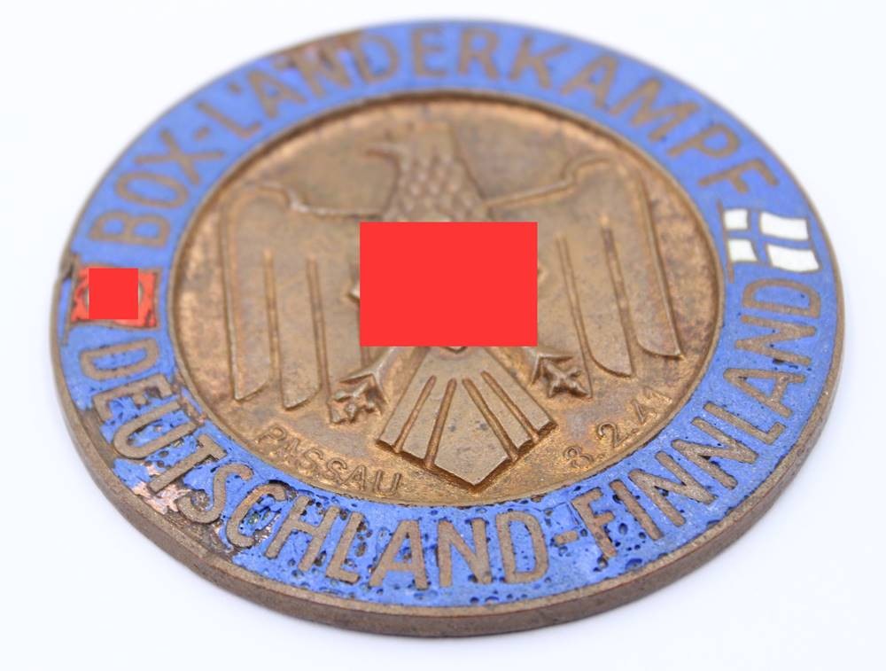 Medaille, Box-Länderkampf zwischen Deutschland und Finnland, 8. Februar 1941 Passau, ca. D-8cm, verso Hersteller
