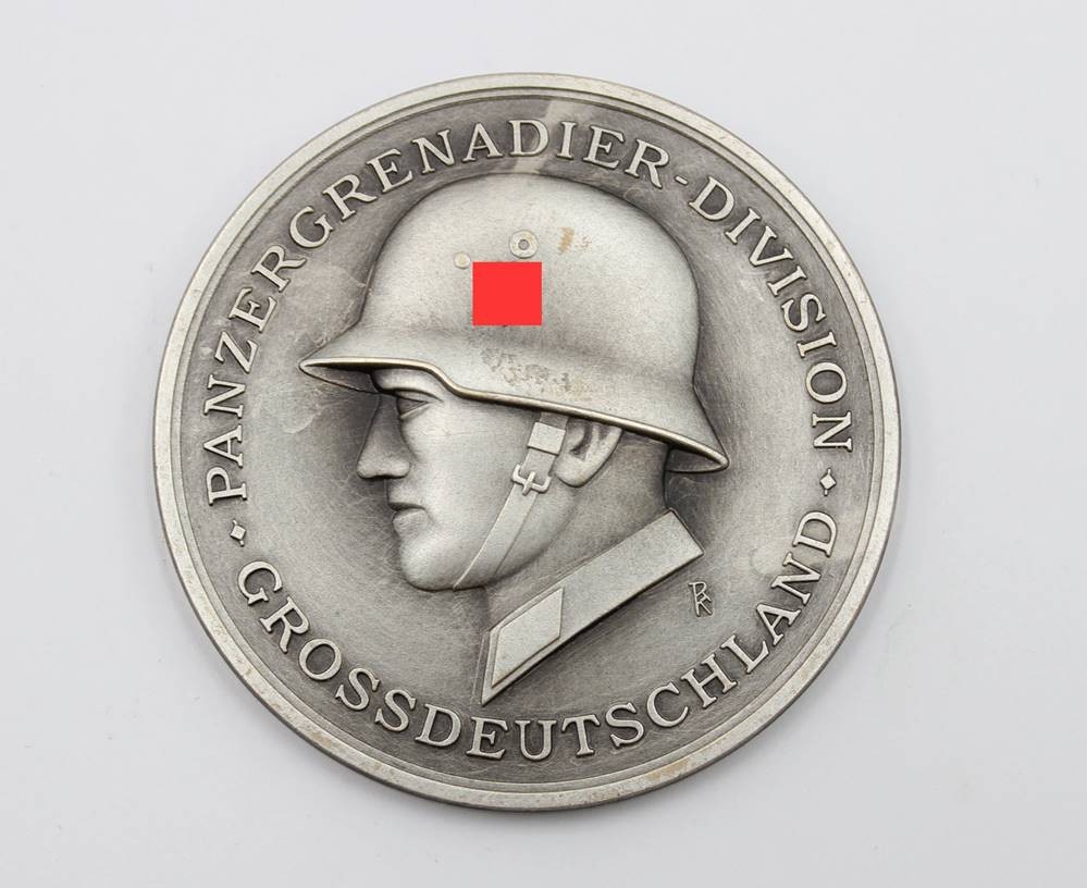 Medaille, Panzergrenadierdivision Großdeutschland, Buntmetall, Umschrift "DIE HEIMAT DANKT DEN TAPFEREN SOLDATEN", D-6,5cm [1]