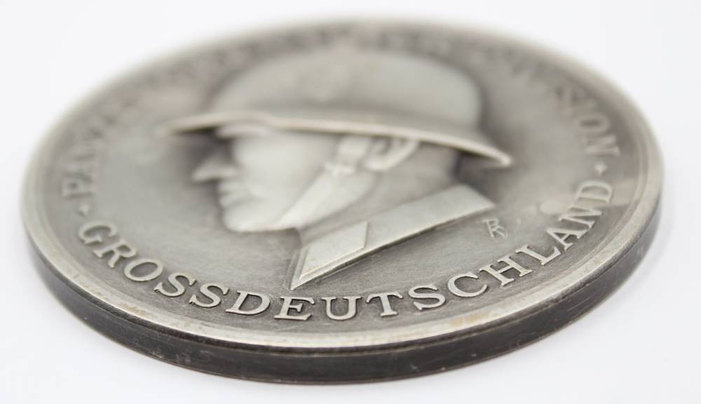Medaille, Panzergrenadierdivision Großdeutschland, Buntmetall, Umschrift "DIE HEIMAT DANKT DEN TAPFEREN SOLDATEN", D-6,5cm